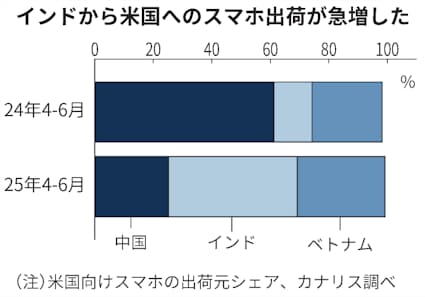 ・アメリカ向けスマホ出荷、インドが中国抜く iPhone生産移管で - 日本経済新聞
